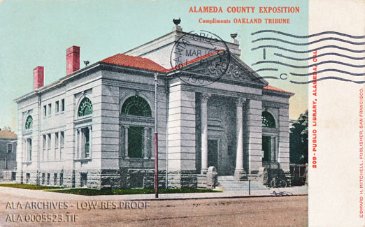 Postcard of the Alameda Public Library in California. Published by Edward H. Mitchell, San Francisco.