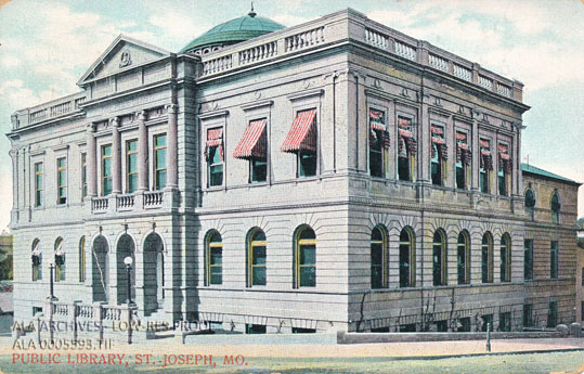 Postcard of the Public Library in St. Joseph, Missouri.