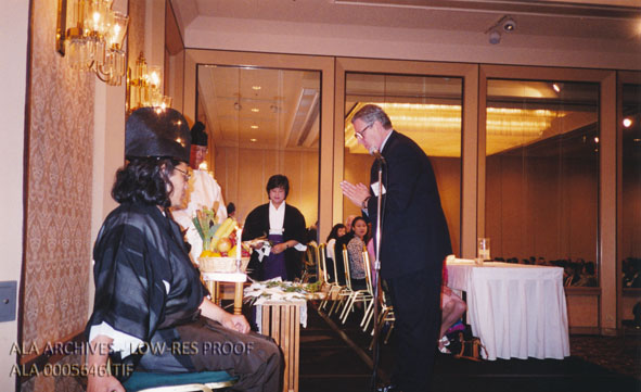 ALA executive director William R. "Bill" Gordon at the Shinto ceremony at the opening of the National Conference on Asian Pacific American Librarians in San Francisco.