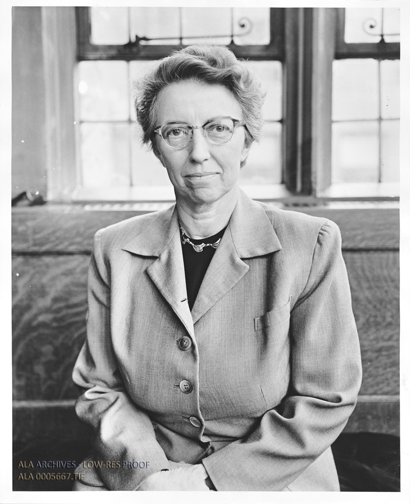 Portrait of Mildred Batchelder, former executive secretary of ALA's Children's Services Division and Young Adult Services Division.
