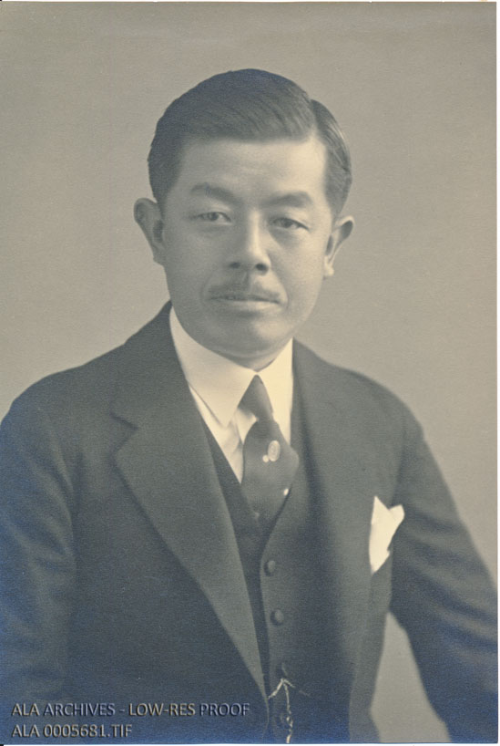 Photograph of Fujio Mamiya, a member of ALA and president of a library supply company in Osaka, Japan. Mamiya compiled a Japanese dictionary of library terms.