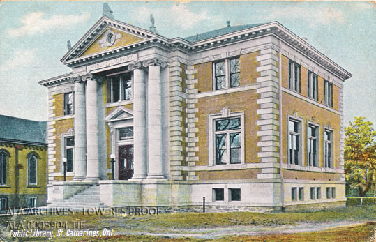Postcard of the Public Library in St. Catharines, Ontario, Canada. Published by W.G. Farlane.