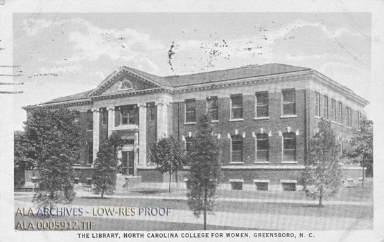 Postcard of the North Carolina College for Women Library in Greensboro, North Carolina. Published by the Hermann Post Card, Chicago, IL.
