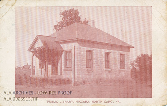 Postcard of the Public Library in Niagara, North Carolina.
