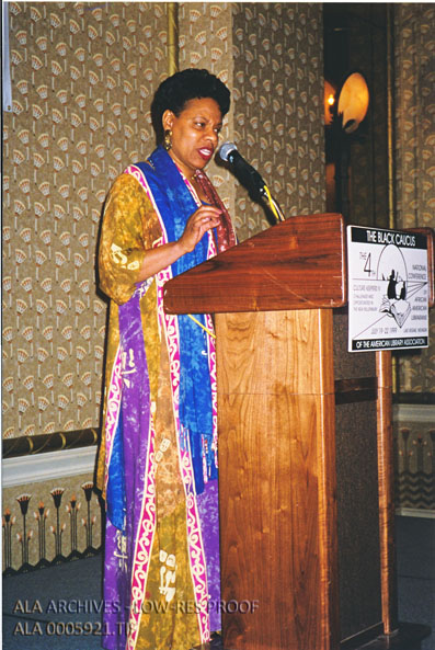 Poet Mona Lake Jones as the closing speaker at the fourth National Conference of African American Librarians in Las Vegas.