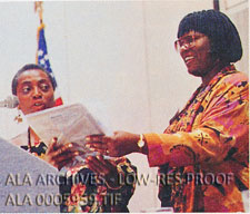 Mary Lenox giving an award to author Gloria Naylor at the National Conference of African American Librarians.