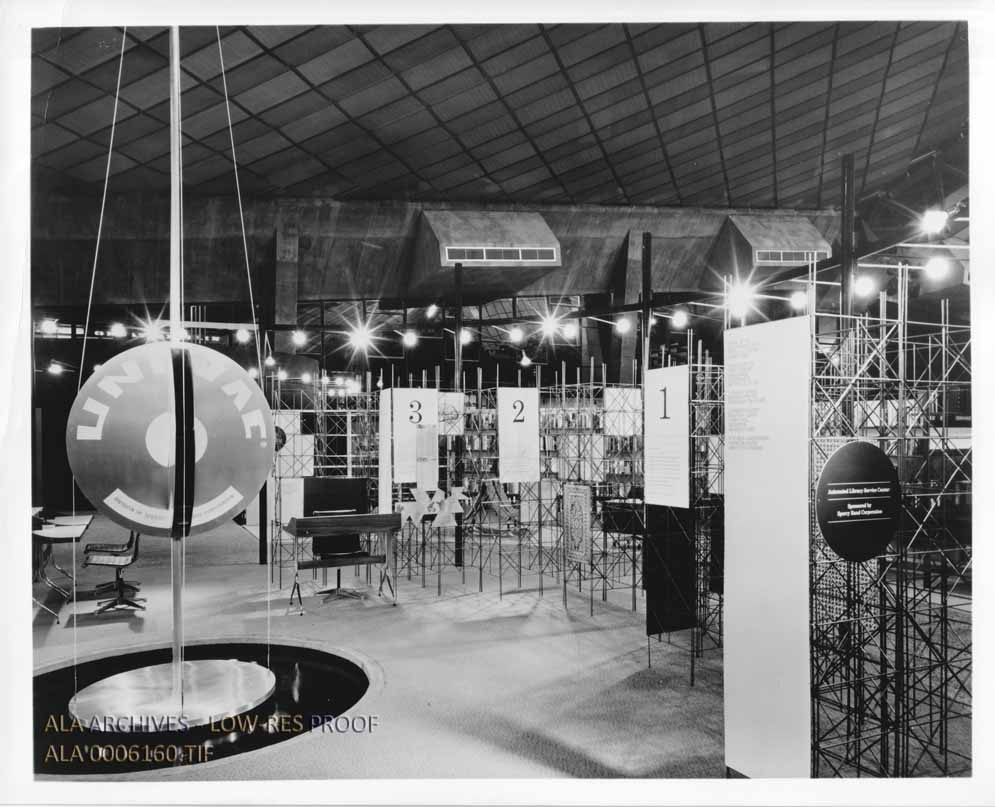View of the Automated Library Service Center at Library 21. Sponsored by Sperry Rand Corporation, this area included a UNIVAC computing system.