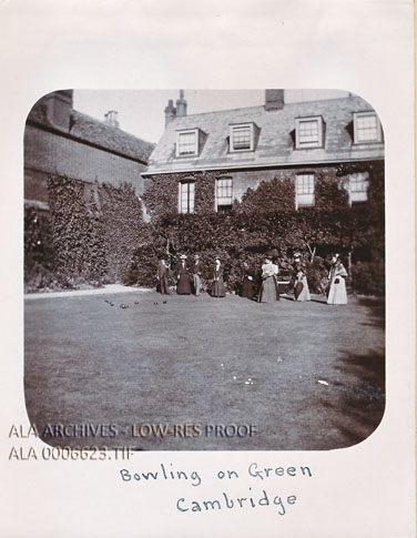 ALA members bowling on the green at Cambridge, England, from the ALA English Excursion trip to the Library Association meeting in London.