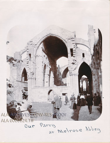Photograph of Melrose Abbey in Scotland from the ALA English Excursion trip to the Library Association meeting in London.