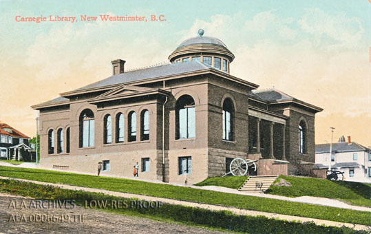 Postcard of the Carnegie Library in New Westminster, British Columbia, Canada. Published by Valentine & Sons' Publishing Co.