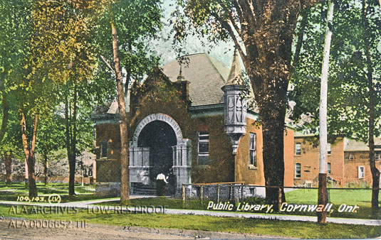 Postcard of the Cornwall Public Library in Ontario, Canada. Published by Valentine & Sons' Publishing Co.