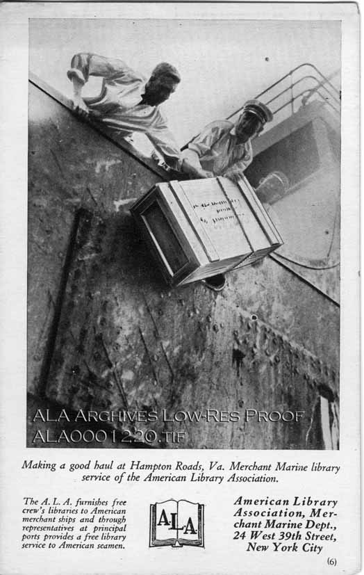 The A.L.A. furnishes free crew's libraries to American merchant ships and through representatives at principal ports provides free library service to American seamen.