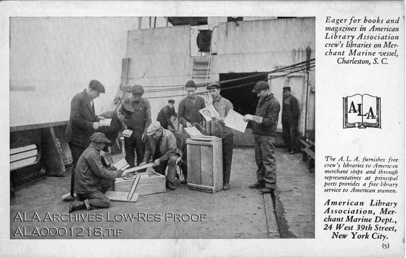 The A.L.A. furnishes free crew's libraries to American merchant ships and through representatives at principal ports provides free library service to American seamen.