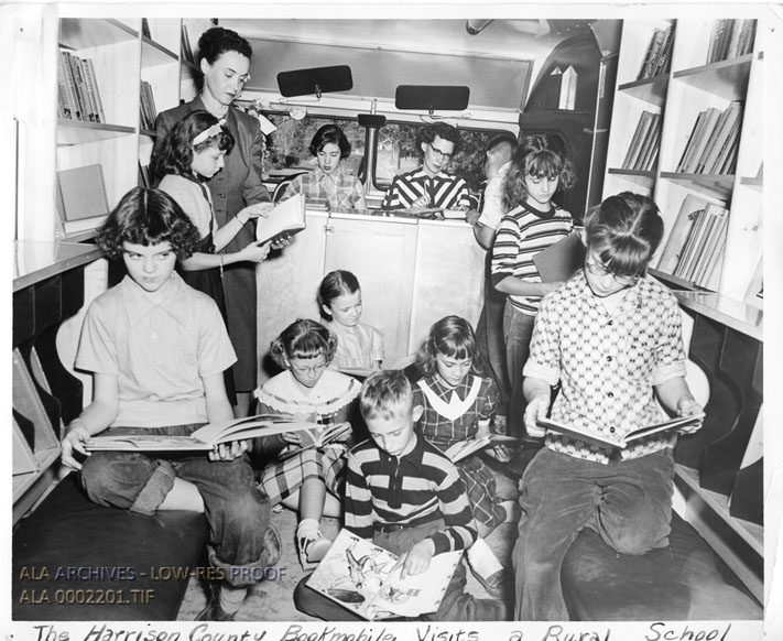 Harrison County Bookmobile Visits a Rural School | The American Library Association Archives