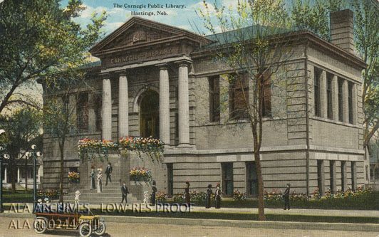 Postcard of the Carnegie Public Library in Hastings, Nebraska.