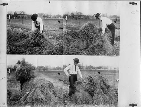 Eugene Davenport Shucks Wheat on the Davenport Plots | University of Illinois Archives