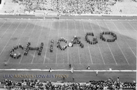 Illinois - Chicago band in formation on the field, spelling "CHICAGO."