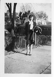 Item 10: Esther Fink (Viola), from Chicago, showing army bus in rear, 1945