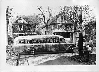 Bus in front of houses | The Sousa Archives and Center for American Music
