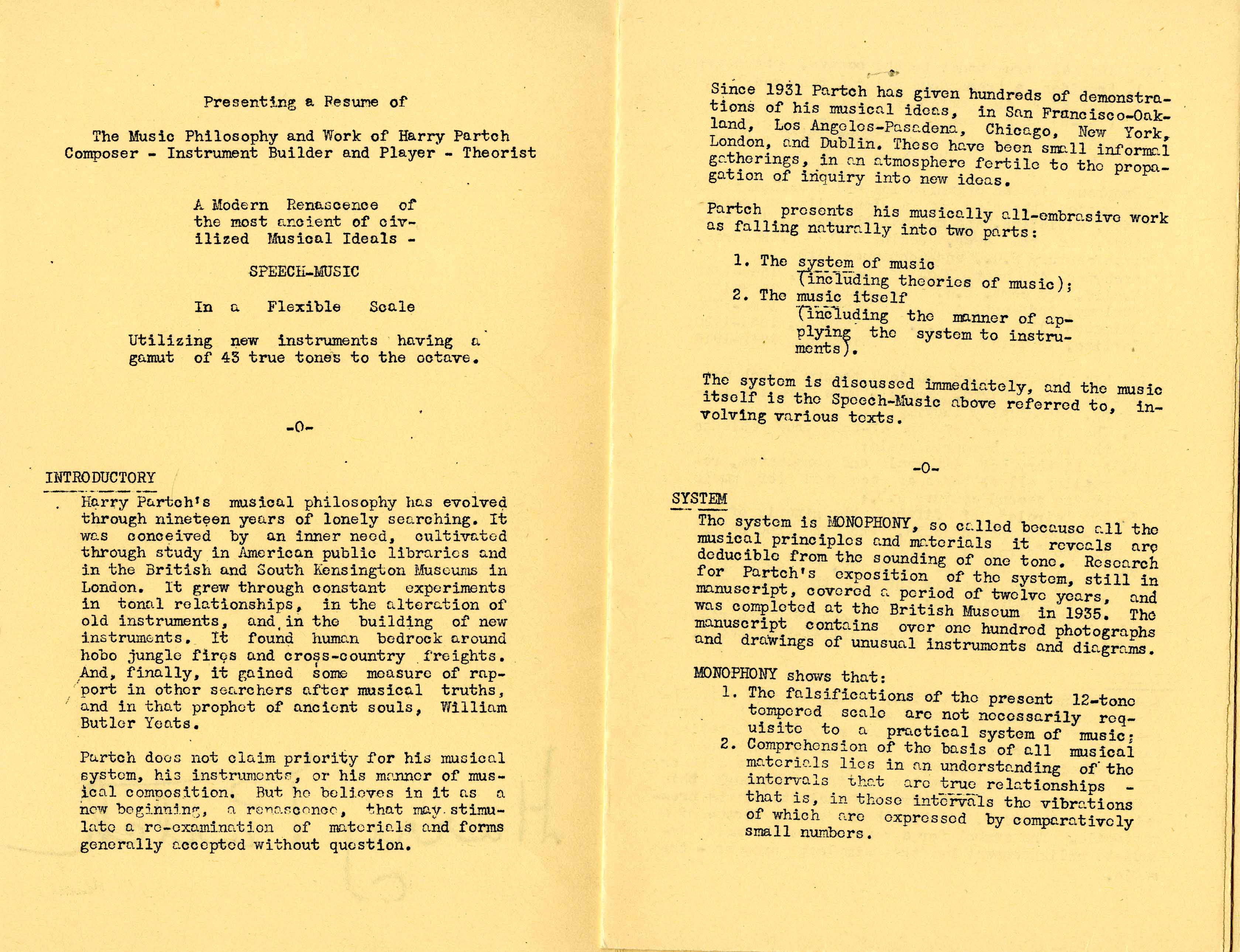 Folder 1: Music Philosophy and Work of Harry Partch, ca. 1954