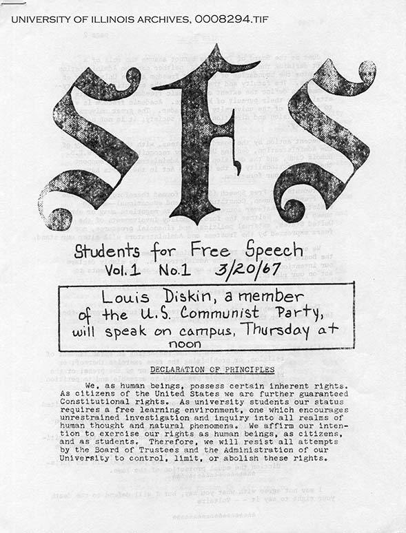 Cover of the Students for Free Speech newsletter | University of Illinois Archives
