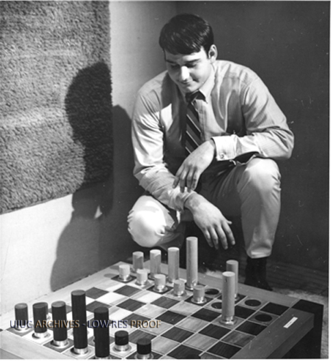 Industrial design student with chess set | University of Illinois Archives