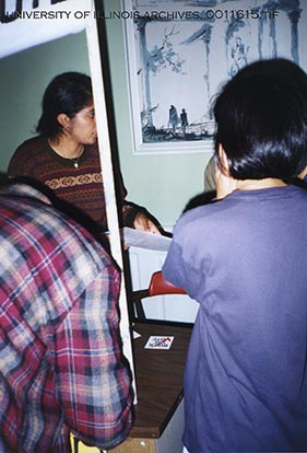 Student members of the Volunteer Illini Project work the Project Vote campaign in 1996