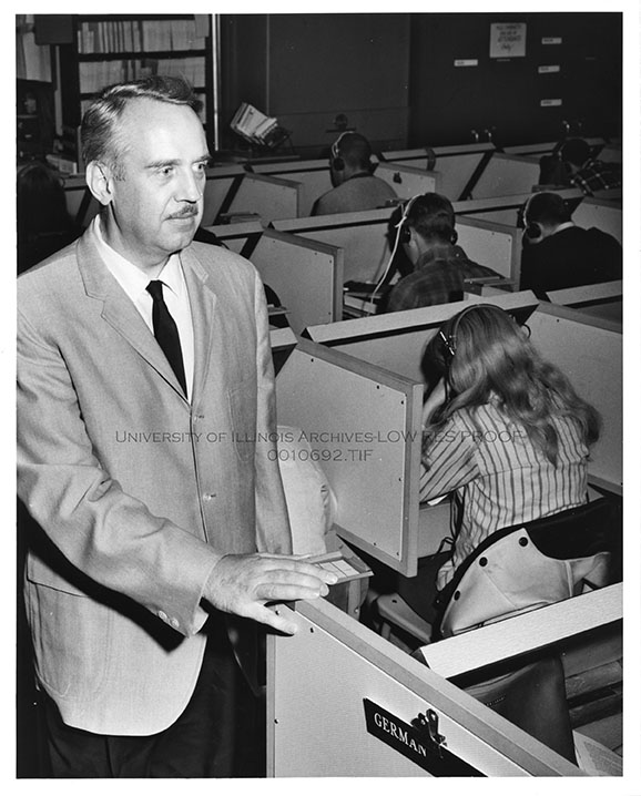 Professor K. Myers in Language Lab | University of Illinois Archives