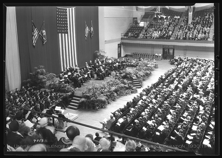 University President, Harry Woodburn Chase (1930-33) stands in Huff Hall during his inauguration to the University of Illinois Presidency. Chase was the president for three years before he left for a New York University Chancellorship.