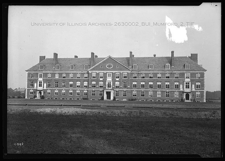 Featured is the east-facing side of Mumford Hall. Dedicated on January 25th, 1924, as the "New Agricultural Building", Mumford Hall was opened the following fall as an instructional facility. Dean Davenport of the agricultural college and Dean Herbert W. Mumford both gave speeches at the dedication ceremony. This is the same Mumford was the eventual namesake of the building.
