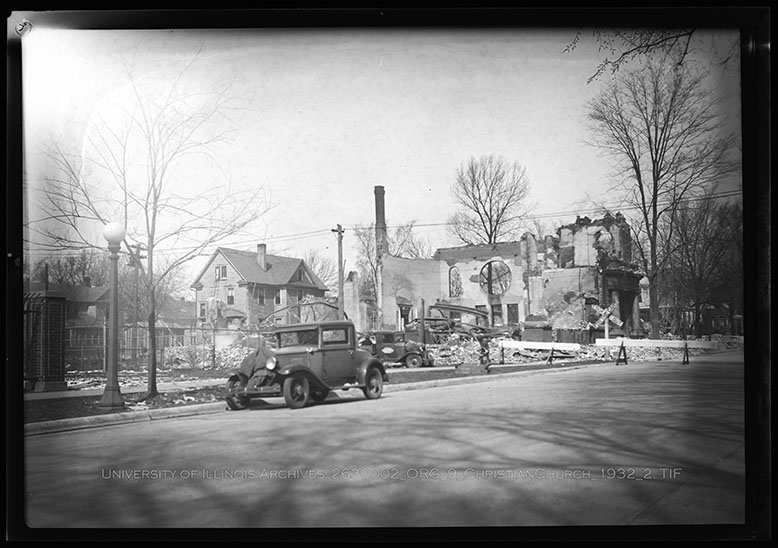 Remains of the University Place Christian Church, now UniPlace Christian Church, following a boiler fire on March 7th, 1932. Originally ruled an arson, the building was later classified as an accidental fire and rebuilt 6 years later.