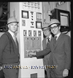 Chancellor Peltason and two other gentlemen pose for a photo at the Abbott Power Plant