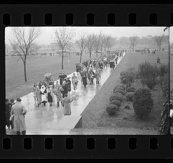 Fans outside Memorial Hall 6 | University of Illinois Archives