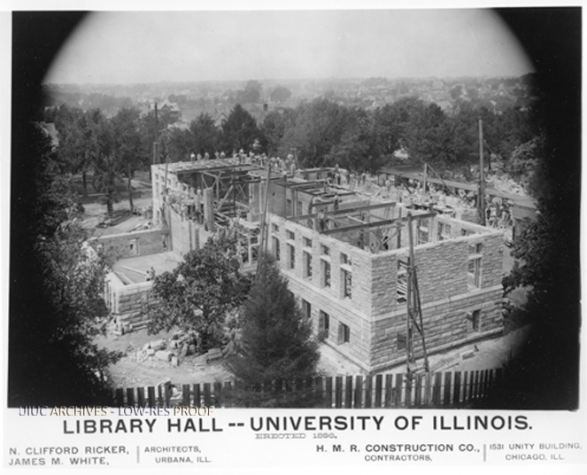 Photo of the Library Building (later designated Altgeld Hall) under construction. N. Clifford Ricker & James M. White, Architects. HMR Construction Co, Contractors