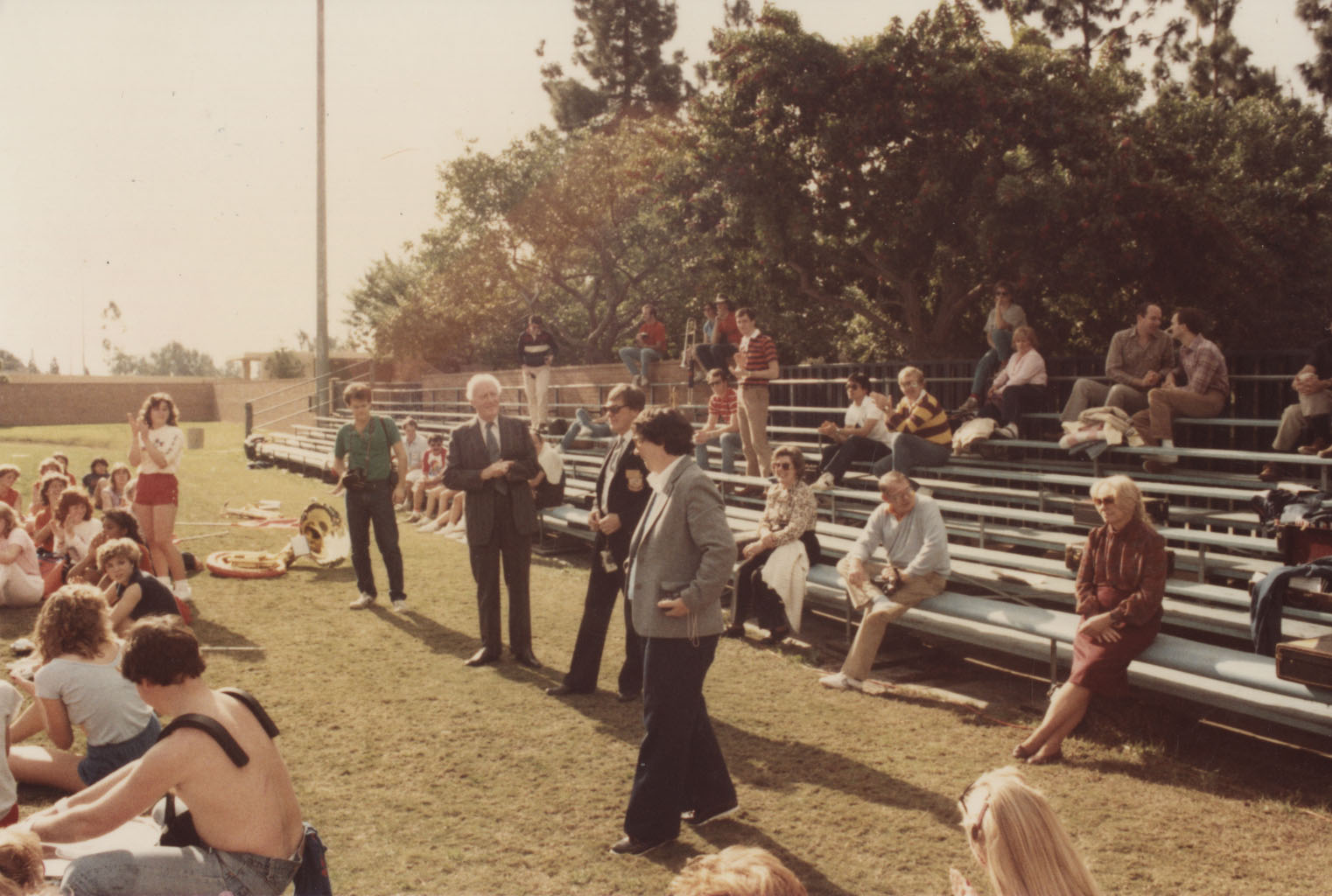 Marching Illini Listening to Instruction on a Field for Rose Bowl Parade | The Sousa Archives and Center for American Music