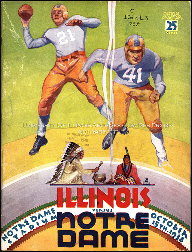 Cover of the football program for the 1938 game between Illinois and Notre Dame held at Notre Dame Stadium.