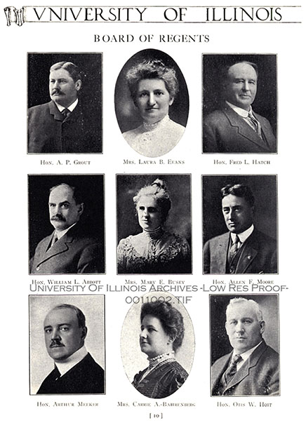 Picture of the Board of Regents taken from the 1912 Illio yearbook.