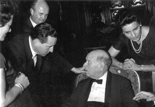 200 dpi black and white photograph. From left to right: Julie Magyar, Gabriel Magyar, Mihály Kuttner, Pablo Casals, and Marta Casals.