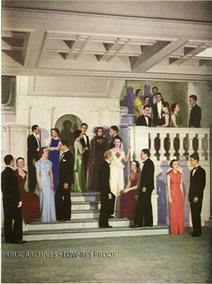 Lincoln Hall - Main entry hall with people from the 1936 Illio.