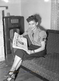 Mrs. Vashti McCollum reads news reports of her U.S. Supreme Court victory in a three-year fight to outlaw religious education in the Champaign schools.