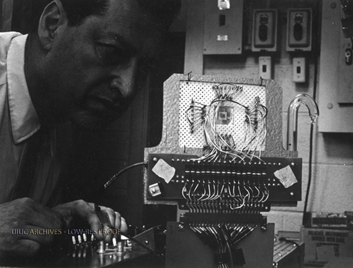 H. G. Slottow, co-inventor of plasma display of PLATO, tests circuitry.