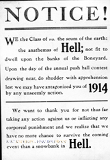 The sophomores, class of 1913, write a seemingly ironic proclamation to the freshmen