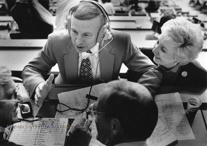 Coach Henson and His Wife Talk to Reporters After 400th Victory | University of Illinois Archives
