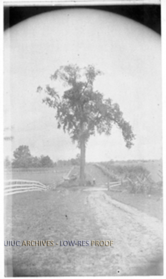 View of an American Elm tree near Olney in Richland County, IL. This tree can be seen in images number 13 and 15 of collection ("Richland County - Farm House Near Olney" (3 and 5).