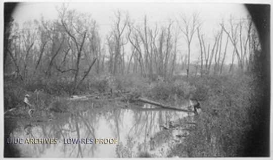 Illinois Scenes - Man Sits Next to a Fallen Tree and Standing Water | University of Illinois Archives