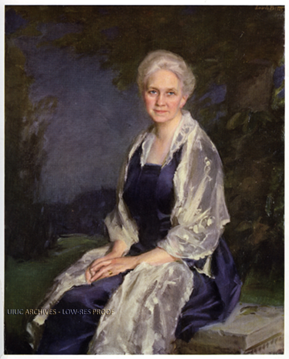 Reproduction of a painted portrait of Dr. Isabel Bevier when she was a professor emeritus of home economics at the University of Illinois.