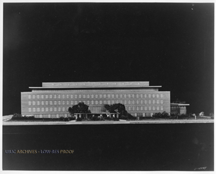 Architect's model of the Bevier Hall showing the east side of the building as it would be when completed.