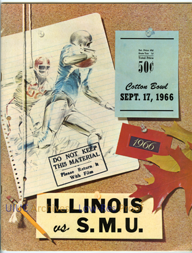 Cover of the program from the match between the Illini and the Mustangs at the Cotton Bowl in Dallas in 1966. Illinois lost 7-26.