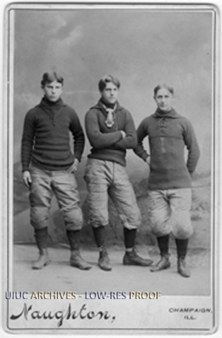 Stuart Forbes, Frank Luyman, and Robert Bullard stand for a photo in their football uniforms.