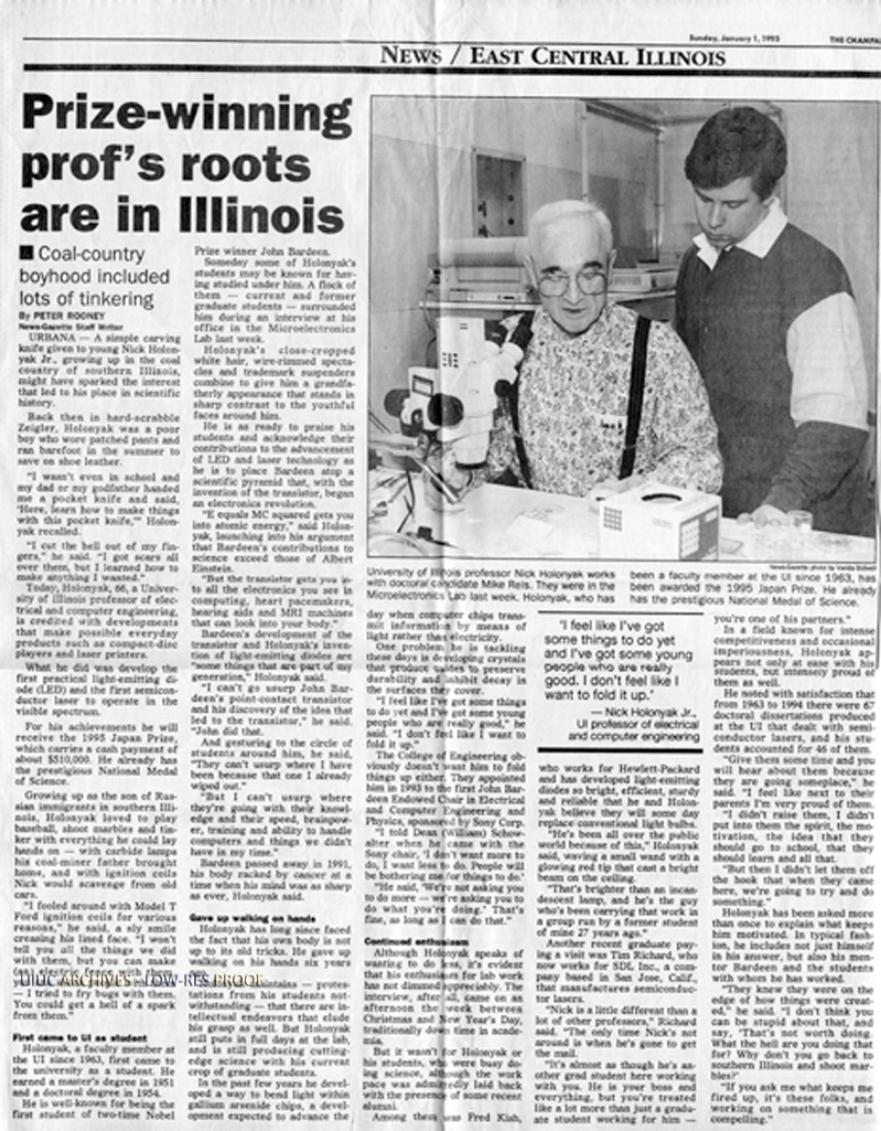 Newspaper Profile of Nick Holonyak | University of Illinois Archives